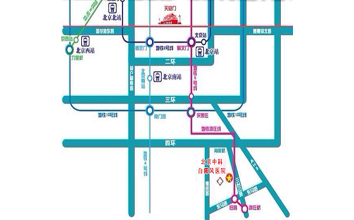 公交路線: 北京西站:北京西站南廣場乘坐821路公交到醫(yī)院斜對面“三臺山路南”。 北京站:北京站東”乘39路公交到“劉家窯橋東”換乘821路公交車到醫(yī)院斜對面“三臺山路南”。 北京南站:北京南站南廣場乘坐665路公交到“亦莊橋北站”,向北步行500米路西。