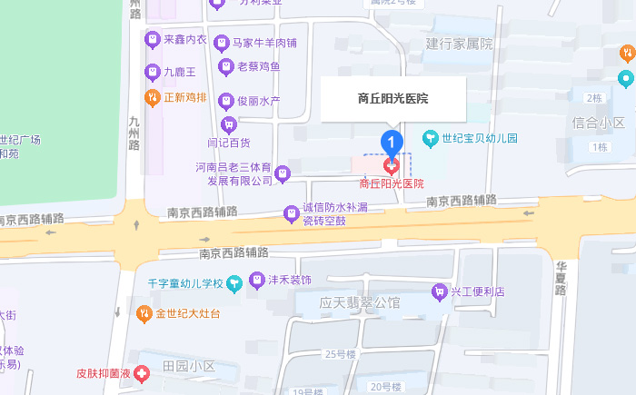 自駕路線: 導(dǎo)航至 導(dǎo)航至 商丘陽光醫(yī)院,醫(yī)院有停車場可供停車。(睢陽區(qū)南京路金世紀(jì)廣場東100米路北)